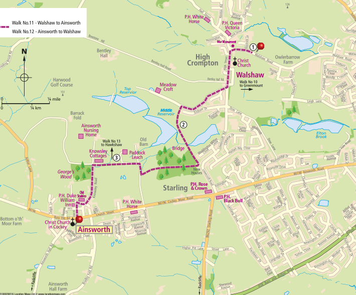 | If continuing on the Village Link Walk No 10, Walshaw to Greenmount, turn 1st right on the High St. into Sudren St. The path starts in the right hand corner of the parking area. | |