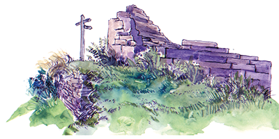 | A delightful spot for a picnic on a sunny day. Enjoy the views up the length of the upper Redisher valley which contains evidence of human habitation going back over 5000 years. Flint tools and stone axes have been found and many believe this valley was probably the original Holcombe. Look for the faint parallel lines running down the fields on the hillsides as evidence of the medieval ridge and furrow ploughing method, created by the repeated use of ox drawn ploughs and also note the ancient field boundaries constructed of earthen banks and vertical flagstone walls. | |||